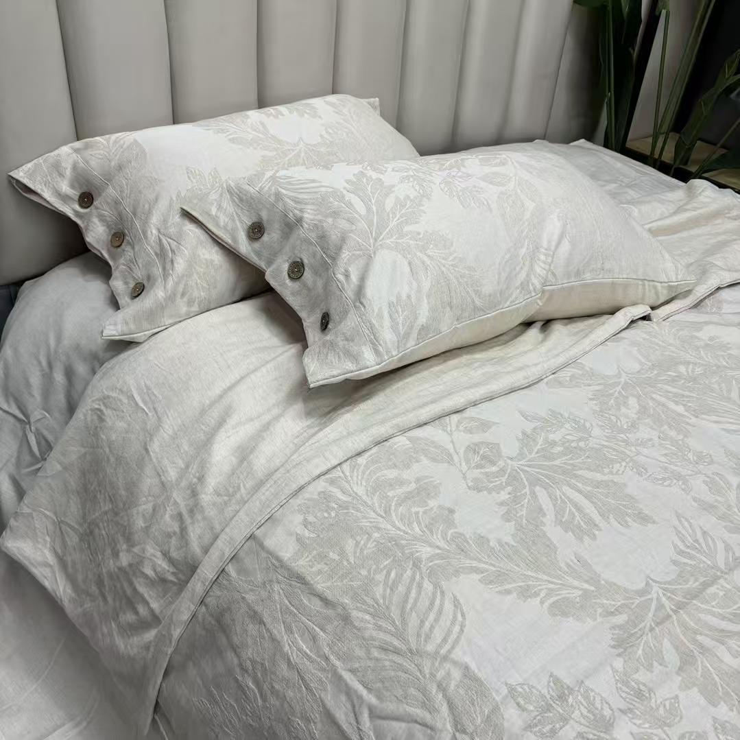 亚麻提花床品四件套轻奢复古吸湿排汗
