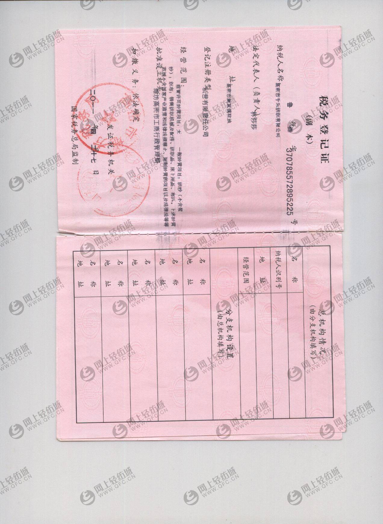 经营范围: | 纺纱(不含浆纱);织布;销售纺织机械及配件、纺织品、床上用品、布匹、日用品、服装鞋帽、工艺品(不含文物)、化工原料、建筑材料、土产杂品(上述经营范围不含危险化学品、易制毒化学品及易燃易爆物品);经营国家允许范围内的货物进出口业务。(依法须经批准的项目,经相关部门批准后方可开展经营活动) | ||